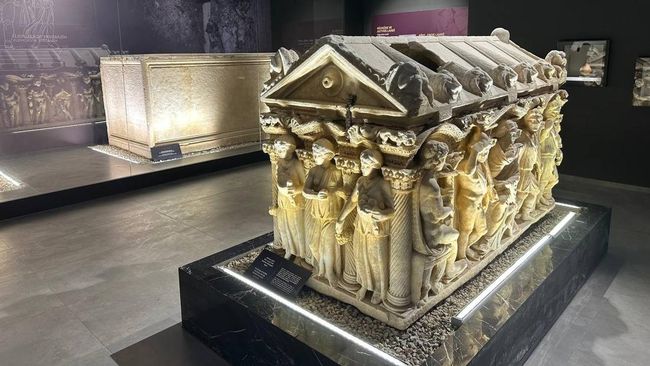 Di dalam museum ini, terdapat permainan papan marmer dari zaman Romawi, sarkofagus pahlawan Yunani Achilles dengan ukiran yang spektakuler, dan sarkofagus Antigonos I dan keluarga bangsawan dengan ukiran yang mempesona.