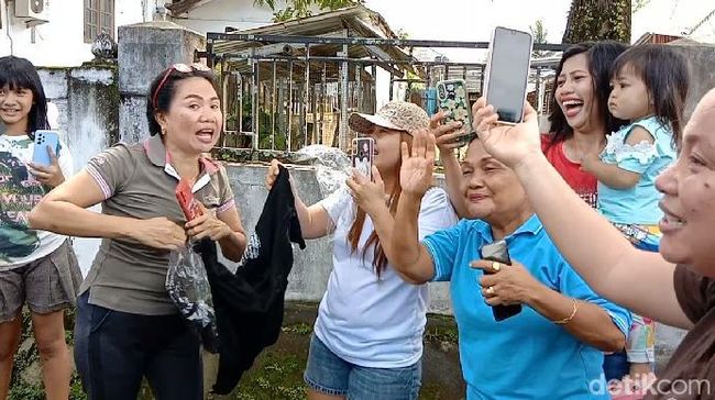 Emak-emak di Minahasa Utara (Minut), Sulawesi Utara (Sulut) berkerumun berebut baju yang dibagikan Presiden Joko Widodo (Jokowi). Mereka rela berdesak-desakan demi mendapat hadiah dari Jokowi.