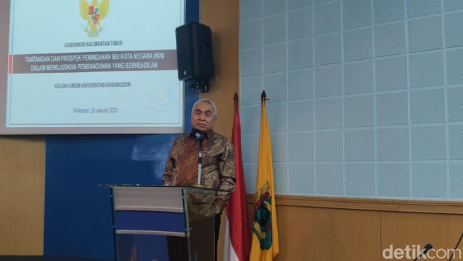 Gubernur Kalimantan Timur (Kaltim) Isran Noor membawakan kuliah umum di Universitas Hasanuddin (Unhas), Kota Makassar, Sulawesi Selatan (Sulsel). Isran dalam pemaparannya membahas Ibu Kota Negara (IKN) Nusantara yang terkait dengan agenda pemerataan pembangunan.