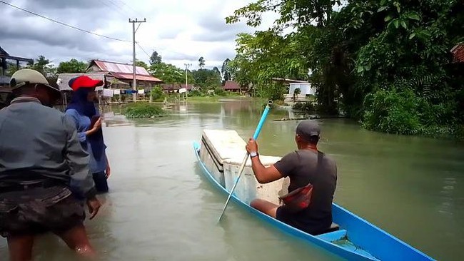 "Banjir sudah sering terjadi akses terputus. Jadi kita harus menggunakan perahu, terutama mengantar anak sekolah dan membeli keperluan rumah tangga," ucapnya.