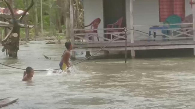 "Mereka takut menyeberang, kan kita cuma menggunakan perahu. Airnya sudah pinggang orang dewasa atau kurang lebih 1 meteran, kalau hujan lagi arus deras. Jadi mereka tetap bertahan di rumah," ungkapnya.
