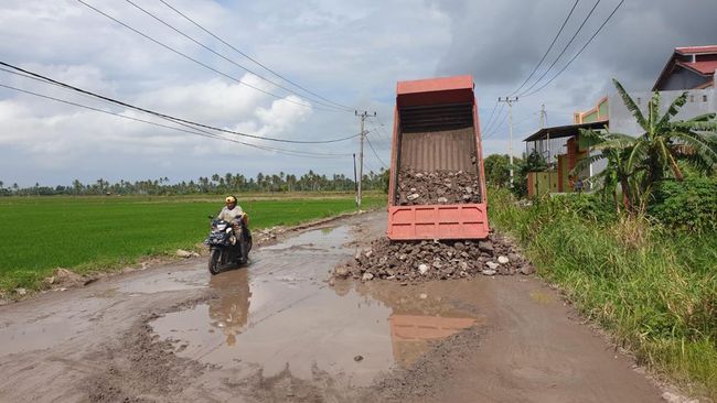 "Kalau habis turun hujan parah sekali. Itu sudah ada kubangan dan mobil yang lewat sering terperosok dan didorong keluar dari kubangan," imbuhnya.