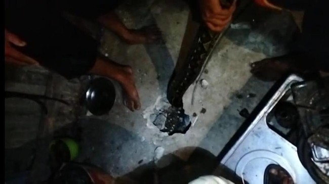 Yamin mengatakan, awalnya ular itu berada di bawah lantai dapur. Petugas Damkar bersama warga harus membongkar lantai cor rumah sebelum dilakukan evakuasi.