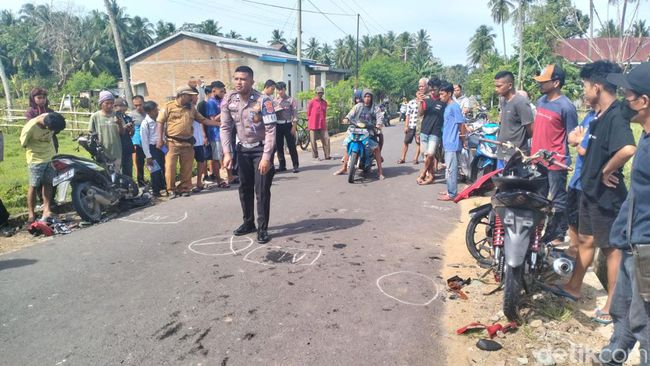 "Dua motor yang melaju dari arah berlawanan terlibat kecelakaan," kata salah satu warga, Saharuddin kepada wartawan di lokasi kejadian, Selasa (7/2/2023).