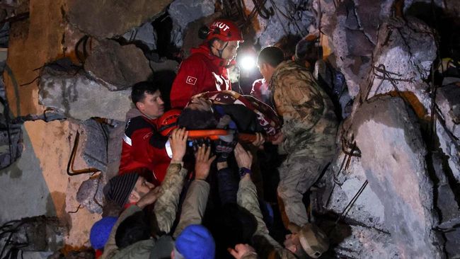 Korban tewas akibat gempa di Turki dan Suriah terus bertambah. Kini total korban tewas dilaporkan menjadi sekitar 7.800 orang.
