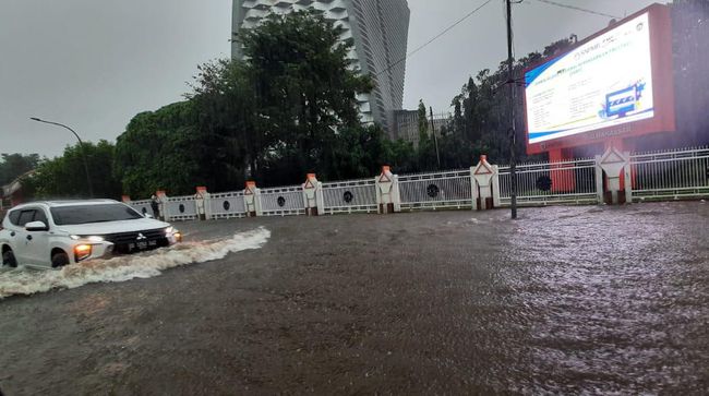 Banjir juga merendam Jalan AP Pettarani, Kota Makassar, Sulawesi Selatan (Sulsel). Ketinggian banjir bahkan mencapai 50 centimeter.