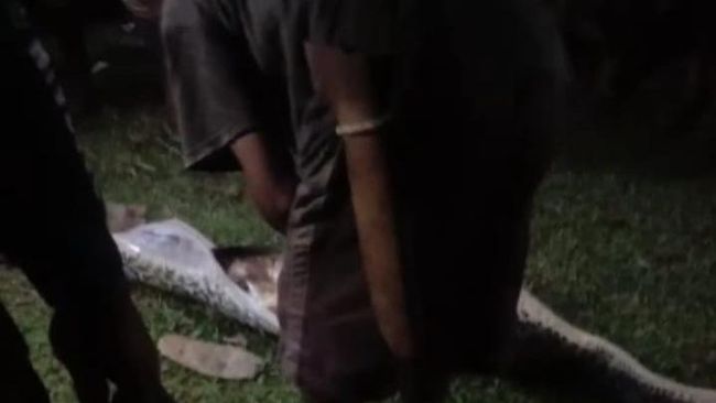 Petani tersebut kaget saat melihat seekor ular piton dengan panjang sekitar 4 meter di balik semak-semak. Ular tersebut dalam posisi terdiam dengan kondisi satu sisi perutnya mengalami pembengkakan.