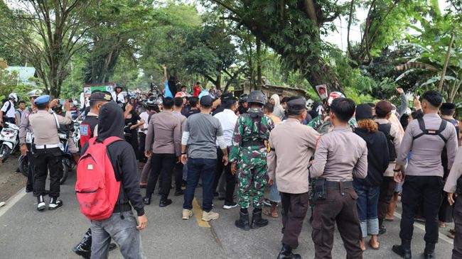 Warga di Kota Palopo, Sulawesi Selatan (Sulsel) menghadang rombongan pembawa jenazah yang hendak memasuki area pemakaman Mancani. Polisi kemudian turun tangan mengawal proses pemakaman tersebut hingga selesai.