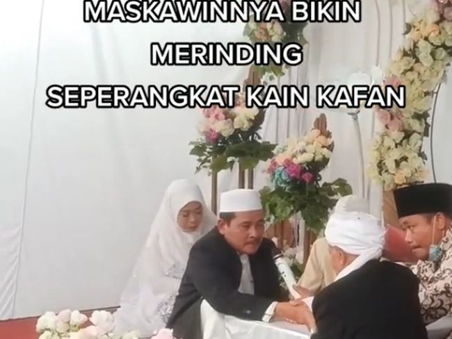 Diketahui, dalam video yang berdurasi 42 detik yang diunggah @panggilaku_panda itu terlihat pengantin pria menyebutkan mahar berupa kain kafan dan uang tunai dengan jumlah Rp 2,58 juta. Pengantin wanita terlihat mengenakan busana serba putih.