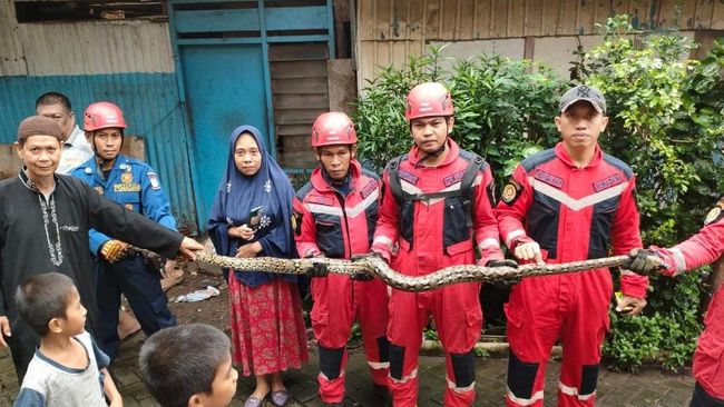 Ular Sanca sepanjang 3 meter di Kota Makassar, Sulawesi Selatan (Sulsel) bikin geger usai ditemukan di dalam rumah warga. Ular tersebut sempat mengamuk saat berusaha dievakuasi petugas Dinas Pemadam Kebakaran (Damkar) Makassar.