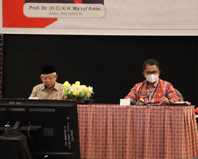 Wakil Presiden RI Ma'ruf Amin melakukan kunjungan kerja ke Sulawesi Barat (Sulbar). Didampingi PJ Gubernur Sulbar Akmal Malik, Ma'ruf Amin melakukan Rapat Koordinasi percepatan penurunan Stunting di Sulbar, di Ballroom Grand Maleo Hotel, Mamuju.