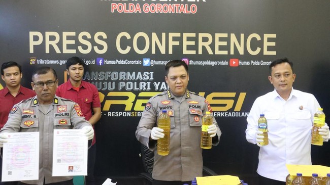 "Kasus terkait dugaan tindak pidana di bidang perlindungan konsumen dan perdagangan berupa penyalahgunaan minyak goreng rakyat Minyakita yang dilakukan oleh tersangka IB," kata Kabid Humas Polda Gorontalo Kombes Wahyu Tri Cahyono saat konferensi pers di Aula Humas Polda Gorontalo, Kamis (23/2/2023).