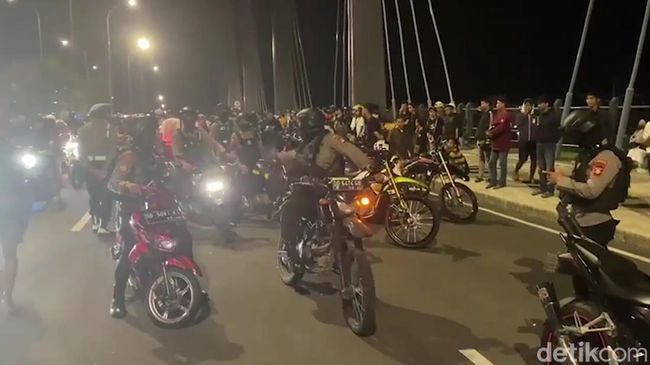 "Dalam patroli kami melaksanakan razia, kami melaksanakan hunting dan pas malam ini kita melaksanakan razia di pintu keluar CPI kami dapat kurang lebih seratus sepeda motor rembang dua," ujar Darminto.