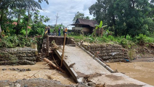 Banjir bandang melanda Kabupaten Enrekang, Sulawesi Selatan (Sulsel). Akibatnya, jembatan penghubung antardesa dilaporkan terputus dan 115 hektare sawah warga rusak tersapu banjir bandang.