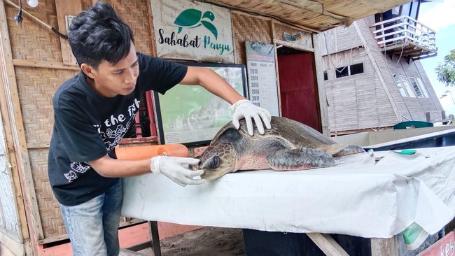 "Selama masa perawatan, penyu tersebut terlihat bergerak normal mirip penyu pada umumnya. Namun penyu tersebut sangat malas makan ketika diberi makan," kata Yusri kepada wartawan, Minggu (12/3/2023).