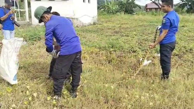 Kedua ular tersebut ditangkap di Dusun Benteng, Desa Tobadak, Kecamatan Tobadak, Mamuju Tengah pada Selasa (14/3). Damkar menerima 2 laporan terkait kemunculan ular piton tersebut.