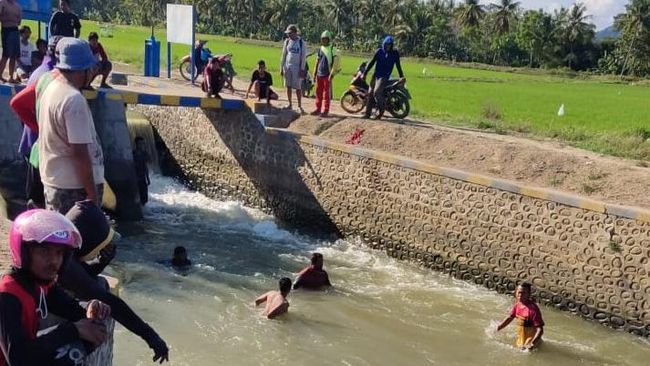 "Mamanya (korban) curiga, ketika dia jumpa sepeda sama baju anaknya di atas bendungan (saluran irigasi). Mamanya panik langsung panggil warga untuk melakukan pencarian," kata kerabat korban, Kamaruddin kepada wartawan, Minggu (19/3/2023).