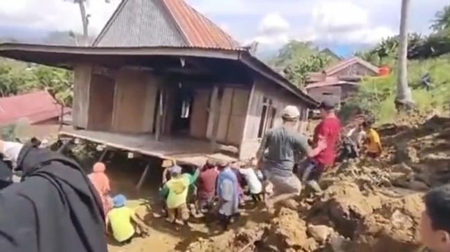 Namun tiba-tiba rumah kayu tersebut ambruk. Sejumlah warga yang berada di bawah rumah panggung tertimpa.