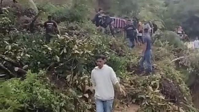 Peristiwa jenazah ditandu warga itu terjadi pada Senin (21/3/2023). Jenazah tersebut digotong bersama warga melintasi empat titik longsor.