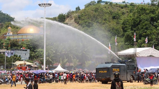 Seorang warga kemudian diduga memukul seorang wanita yang bertugas sebagai panitia. Polisi akhirnya membubarkan massa dengan menggunakan mobil water cannon.