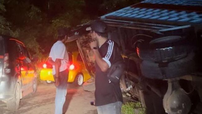 "Pokoknya takkancing (terhenti). Tidak bisa memang bergerak kendaraan gara-gara itu truk tua yang terbalik," ungkapnya.