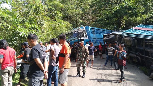 "Pokoknya takkancing (terhenti). Tidak bisa memang bergerak kendaraan gara-gara itu truk tua yang terbalik," ungkapnya.