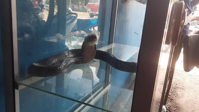 "Hampir 3 meter. 2 meter 50 (panjang ular). Ini klarifikasi, ini bukan king kobra, tapi kobra jenis penyembur," jelasnya.