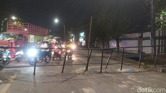 Massa juga menutup akses satu jalur jalan dari arah Gowa menuju Jalan AP Pettarani. Mereka menutup jalan menggunakan pagar besi.