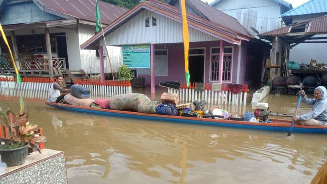 "Ada beberapa mengungsi sebagian besar di desa di rumah keluarganya. Jadi di desa ini banyak warga itu punya pondasi lebih tinggi di belakang rumahnya. (Warga beraktivitas) sudah pakai perahu," sebut Suhardin.