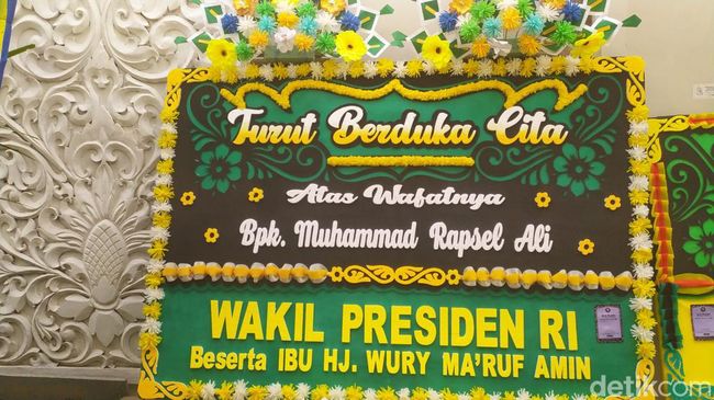 Karangan bunga juga datang dari mertua almarhum, Ma'ruf Amin. Selain itu, ada juga karangan dari Ketua Umum Partai NasDem Surya Paloh.
