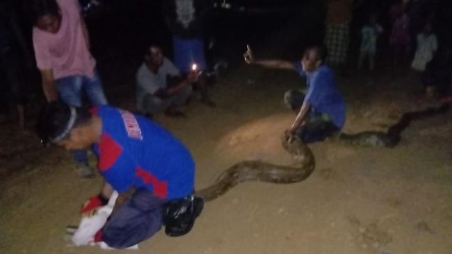 Ular piton tersebut muncul di Desa Ussu, Kecamatan Malili, Luwu Timur pada Rabu (12/4) sekitar pukul 20.36 Wita. Saat itu, warga melihat ular tersebut di jalan hendak menuju ke sungai.