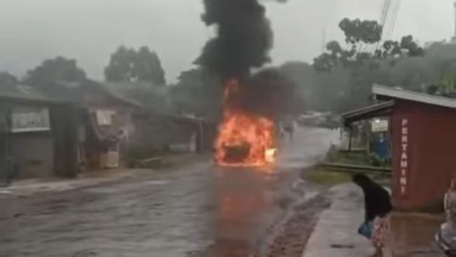 Sebuah mobil di Kabupaten Luwu Timur (Lutim), Sulawesi Selatan (Sulsel) terbakar. Pemicunya diduga berasal dari kompor yang digunakan saat memasak buras yang tak jauh dari mobil tersebut terparkir.