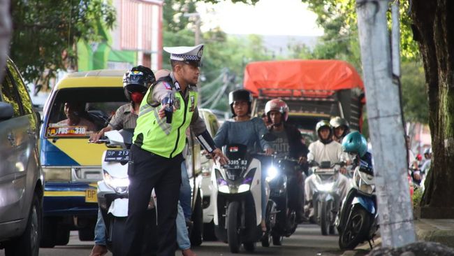 Polisi menerapkan rekayasa lalu lintas (lalin) di ruas jalan Kota Parepare, Sulawesi Selatan (Sulsel). Kebijakan ini dilakukan di tengah padatnya arus kendaraan saat arus balik lebaran.