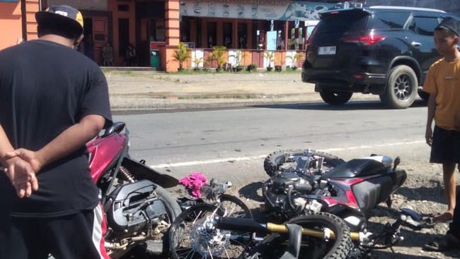 Insiden itu mengakibatkan kedua motor tanpa pelat kendaraan itu rusak parah. Sementara pengemudi inisial BA mengalami luka di bagian lutut.