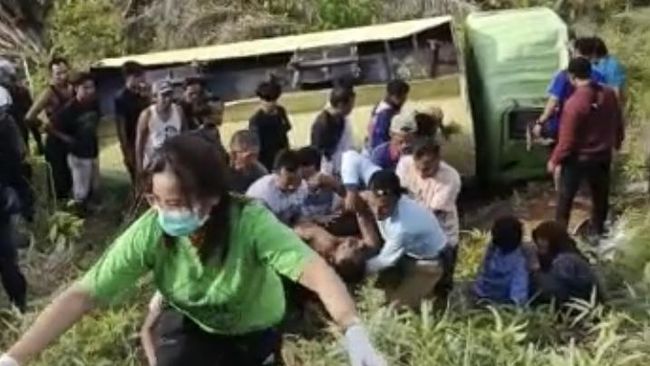 Truk yang mengangkut minyak sawit terjun ke jurang sedalam 10 meter di Luwu Timur (Lutim), Sulawesi Selatan (Sulsel). Insiden itu membuat sopir truk meninggal di tempat.