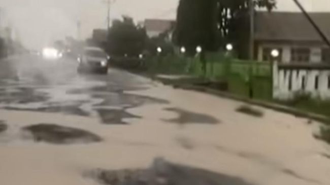 Warga tersebut pun terlihat kesulitan mengendalikan kendaraan untuk menghindari jalan berlubang.