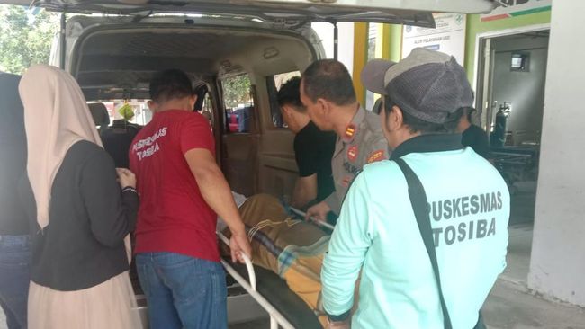 Saat ditemukan, mulut korban sudah dalam keadaan mengeluarkan busa air dan tidak sadarkan diri. Korban lalu dibawa ke Puskesmas Tosiba untuk mendapatkan pertolongan.