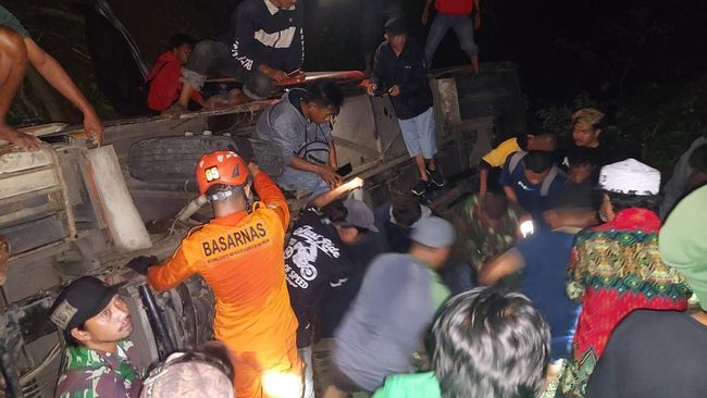 "Mobil bus bermuatan santri dari Ponorogo tujuan dari Palu menuju Gontor Poso masuk jurang di KM 4 Toboli," ujar Kepala Subseksi Operasi dan Siaga Basarnas Palu, Andi Sultan kepada wartawan, Kamis (4/5/2023).