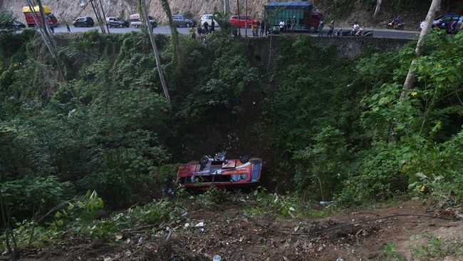 "Bus masih berada di dalam jurang. Polantas Polres Parimo juga sudah komunikasi dengan keluarga korban serta barang-barang juga sudah diamankan polisi," ujar AKBP Yudy dalam wawancatra terpisah.