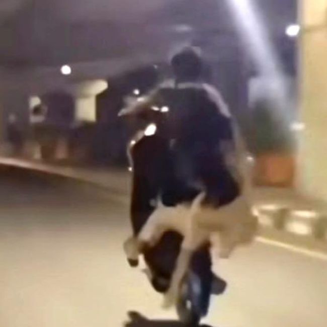 Tampak remaja pria dan wanita itu berkendara motor tanpa menggunakan helm. Tak lama kemudian, remaja pria tersebut mengangkat ban depan motor, sedangkan remaja perempuan berpegang pada pinggang remaja pria dengan tangan kanannya serta tangan kirinya sesekali memegang aspal.