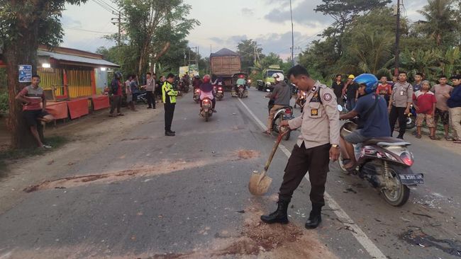 "Jadi truk ini mendahului sepeda motor, melambung ke kanan dan dari arah berlawanan datang motor yang dikendarai korban dan terjadi tabrakan," paparnya.