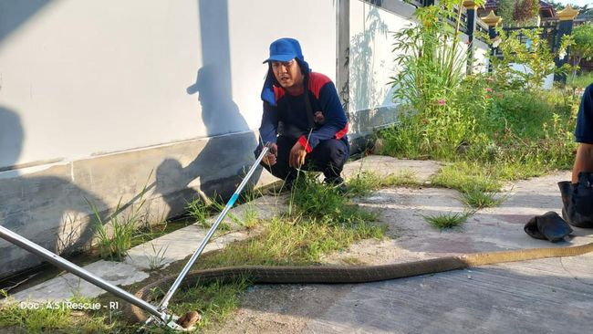 Pemilik rumah awalnya mendengar desis ular di balik semak-semak dan sontak kaget hingga melompat menjauh dari ular tersebut. Beruntung, warga tersebut tidak dipatuk ular.