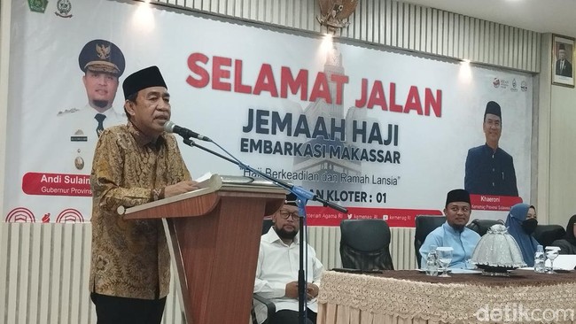 Pantauan detikSulsel di Asrama Haji Makassar, Selasa (23/5/2023) sekitar pukul 23.00 Wita, Ashabul Kahfi memimpin pelepasan calon jemaah haji dengan didampingi anggota DPR RI lainnya, Samsu Niang dan sejumlah tokoh lainnya di Sulsel.