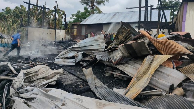Kebakaran menghanguskan 5 rumah panggung di Kabupaten Wajo, Sulawesi Selatan (Sulsel). Api yang menjalar cepat juga membakar 2 unit sepeda motor hingga ludes.