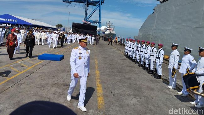 Panglima TNI Laksamana Yudo Margono menjajal KRI Bung Karno-369 dalam Multilateral Naval Exercise Komodo (MNEK) 2023 di Makassar, Sulawesi Selatan (Sulsel). Delegasi angkatan laut dari 36 negara sahabat turut diajak berkeliling menggunakan kapal perang tersebut.