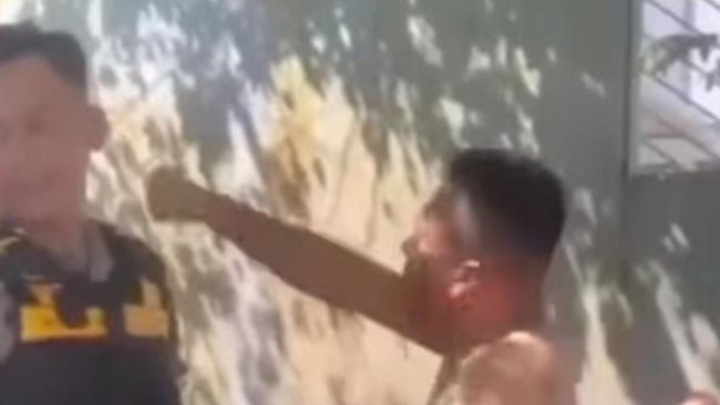 Dalam video viral yang dilihat detikcom, terlihat pria yang hanya mengenakan celana jeans biru panjang dihampiri sejumlah polisi. Saat dihampiri, pria tersebut awalnya mendorong salah satu petugas yang berada di depannya sambil berteriak dan menantang.