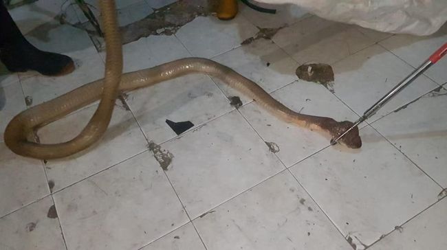 Seekor ular king cobra Kalimantan sepanjang 4 meter masuk ke asrama mahasiswa Universitas Kristen Palangkaraya, Kalimantan Tengah (Kalteng). Beruntung ular tersebut cepat dievakuasi petugas pemadam kebakaran (damkar).