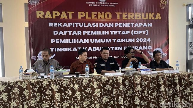 "Setelah melakukan serangkaian perbaikan, kita tetapkan hari ini jumlah DPT untuk Pemilu 2024 sebanyak 294.966 pemilih," kata Plt Ketua KPU Pinrang Muh Ali Jodding kepada detikSulsel, Rabu (21/6/2023).