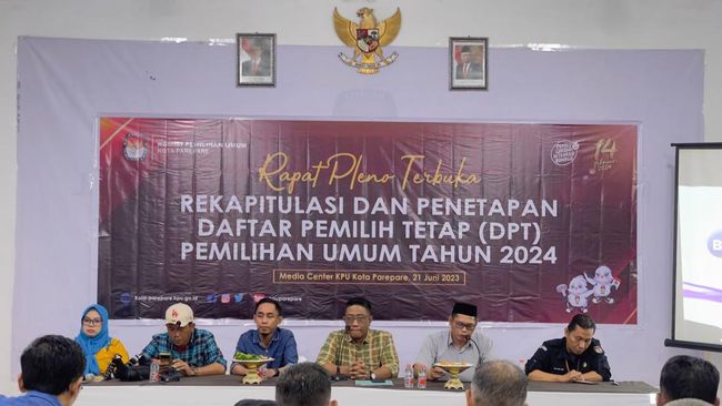 "Kemarin kami sudah melaksanakan pleno terbuka untuk penetapan DPT yang jumlahnya untuk Kota Parepare sebanyak 109.653 pemilih," ungkap Plt Ketua KPU Parepare Mursalim Muslimin kepada detikSulsel, Kamis (22/6/2023).