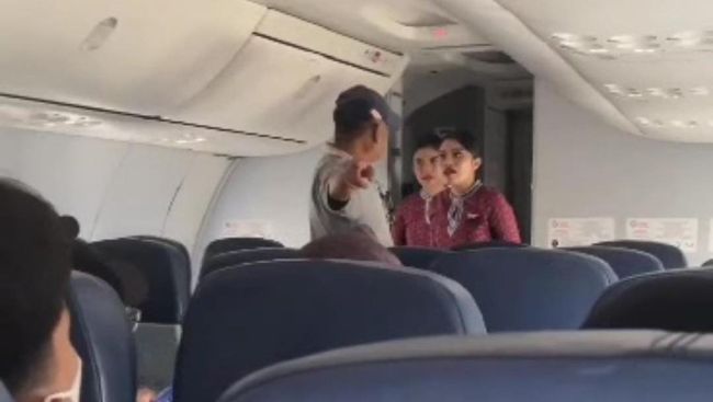 Dalam video tersebut juga terlihat penumpang lainnya mengipas dirinya lantaran kepanasan. Pria tersebut kemudian mendesak pramugari membuka pintu pesawat lantaran sudah tidak tahan kepanasan.